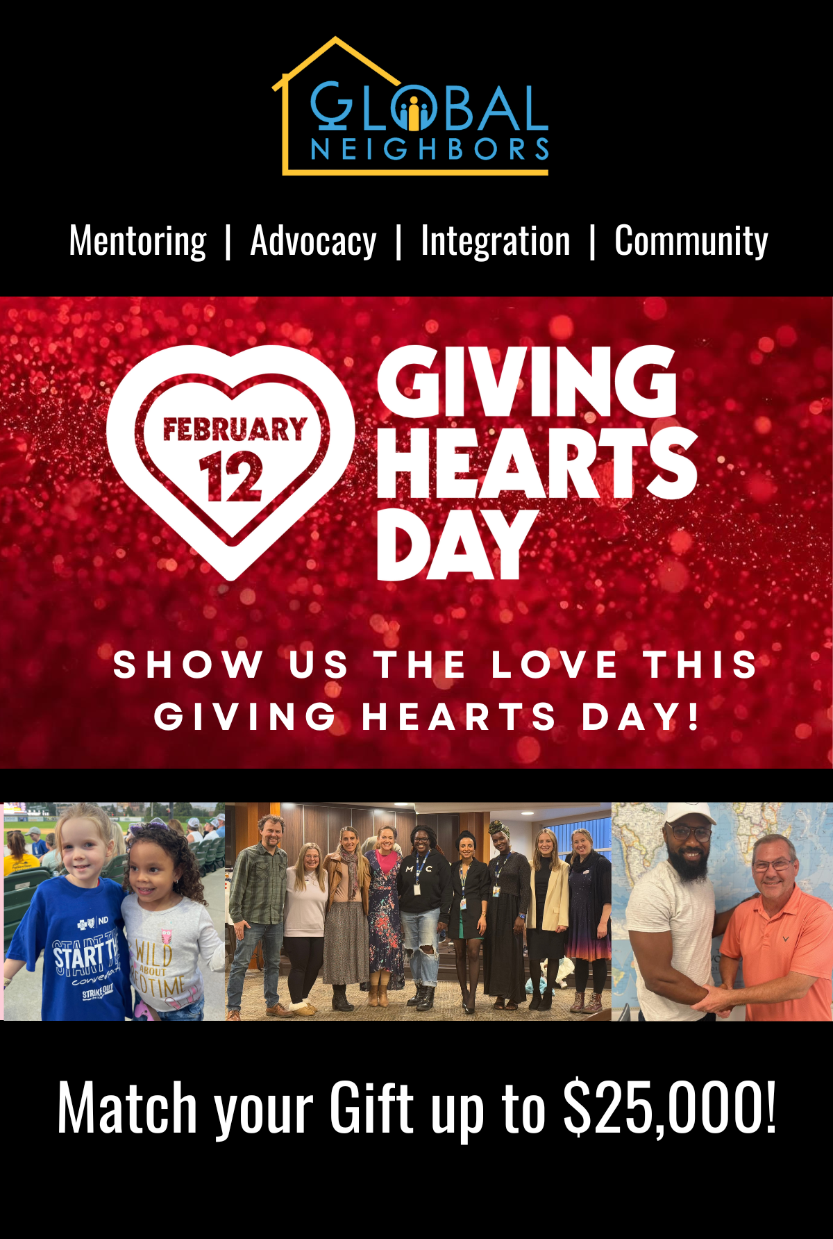 This Giving Hearts Day, you can be a catalyst for change. Thanks to a generous donor, every dollar you give to Global Neighbors February 12th is instantly doubled, amplifying your influence and turning a collective $25,000 into $50,000.